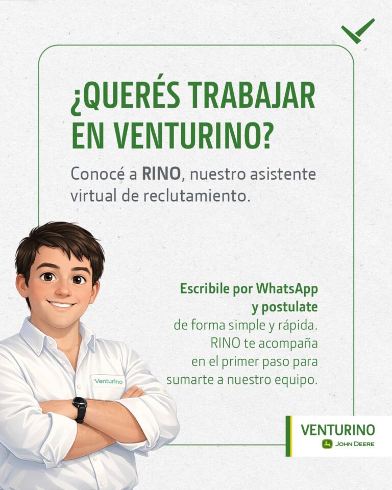 Venturino invita a sus clientes a participar del Desafío Nacional de Cosechadoras 2026 – Edición Crack del Campo, una iniciativa que promueve el uso integral de la tecnología John Deere para optimizar el rendimiento de las cosechadoras y mejorar la eficiencia operativa en el lote.